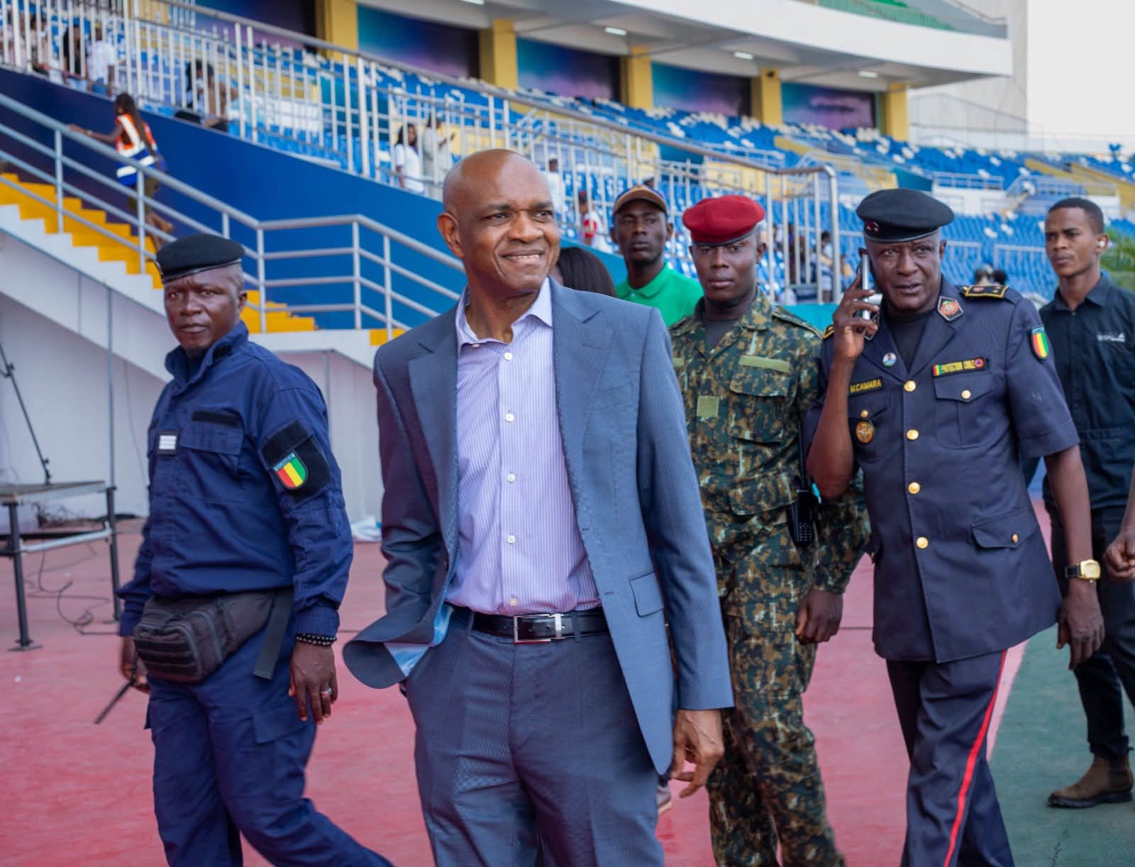 En prélude à la cérémonie solennelle d’investiture du Président de la République, 𝐒𝐨𝐧 𝐄𝐱𝐜𝐞𝐥𝐥𝐞𝐧𝐜𝐞 𝐌𝐨𝐧𝐬𝐢𝐞𝐮𝐫 𝐌𝐚𝐦𝐚𝐝𝐢 𝐃𝐎𝐔𝐌𝐁𝐎𝐔𝐘𝐀, prévue ce samedi 17 janvier 2026 au stade Général Lansana CONTÉ de Nongo, le Ministre de la Sécurité et de la Protection Civile, 𝗹𝗲 𝗚é𝗻é𝗿𝗮𝗹 𝗕𝗮𝗰𝗵𝗶𝗿 𝗗𝗜𝗔𝗟𝗟𝗢, a effectué une visite de terrain afin de s’enquérir de l’état d’avancement des préparatifs sécuritaires et des dispositifs de protection civile mis en place pour l’événement.