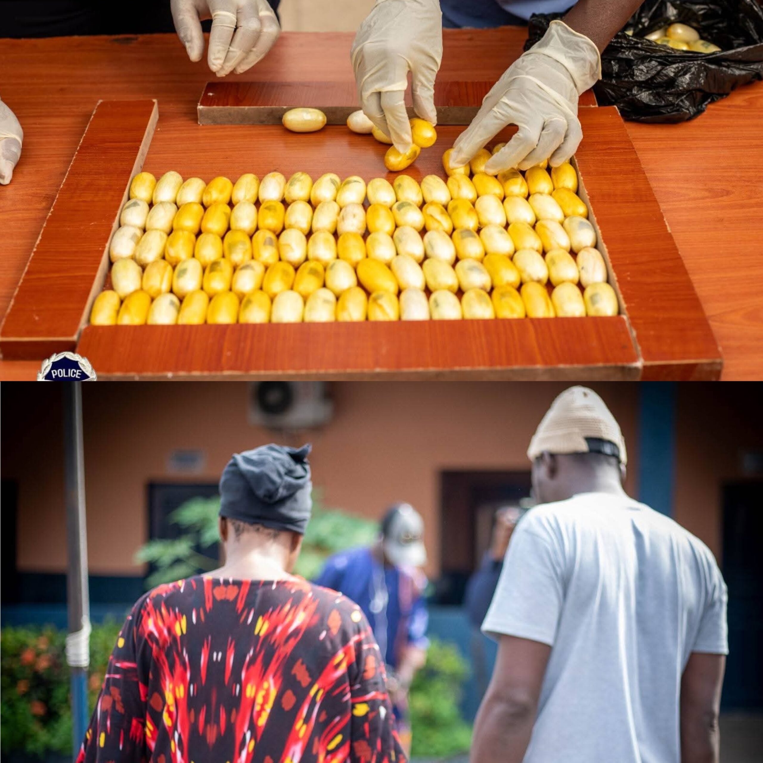 Selon les autorités, les deux suspects — un homme et une femme — avaient ingéré un total de 106 boules de cocaïne, une technique de dissimulation particulièrement risquée et fréquemment utilisée dans les réseaux de trafic international. Dans le détail, douze (12) boules ont été retrouvées chez la femme, contre quatre-vingt-quatorze (94) chez son complice.