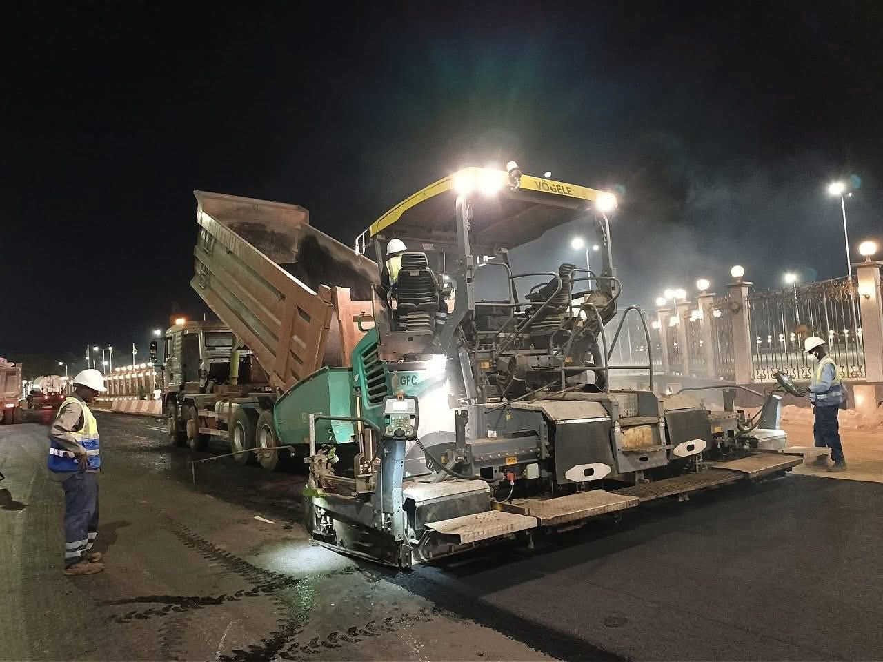 Sur le terrain, les travaux mobilisent des équipes spécialisées appuyées par des équipements modernes, permettant d’assurer un niveau d’exécution conforme aux normes techniques exigées pour les infrastructures routières de grande capacité.