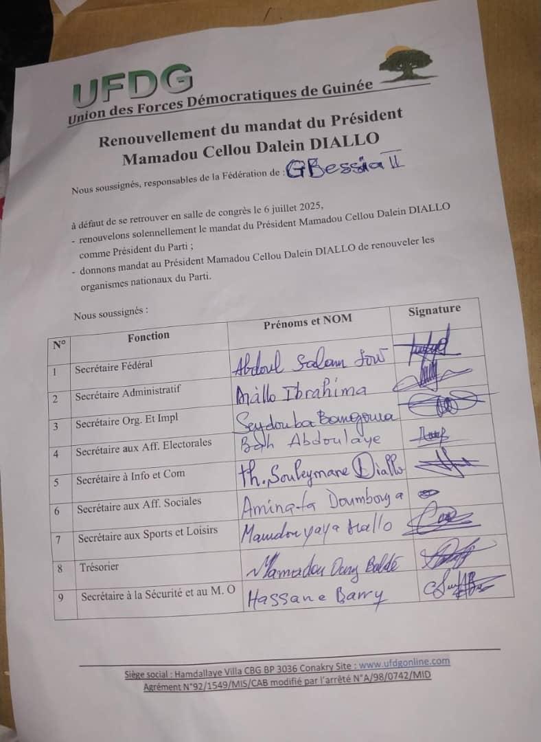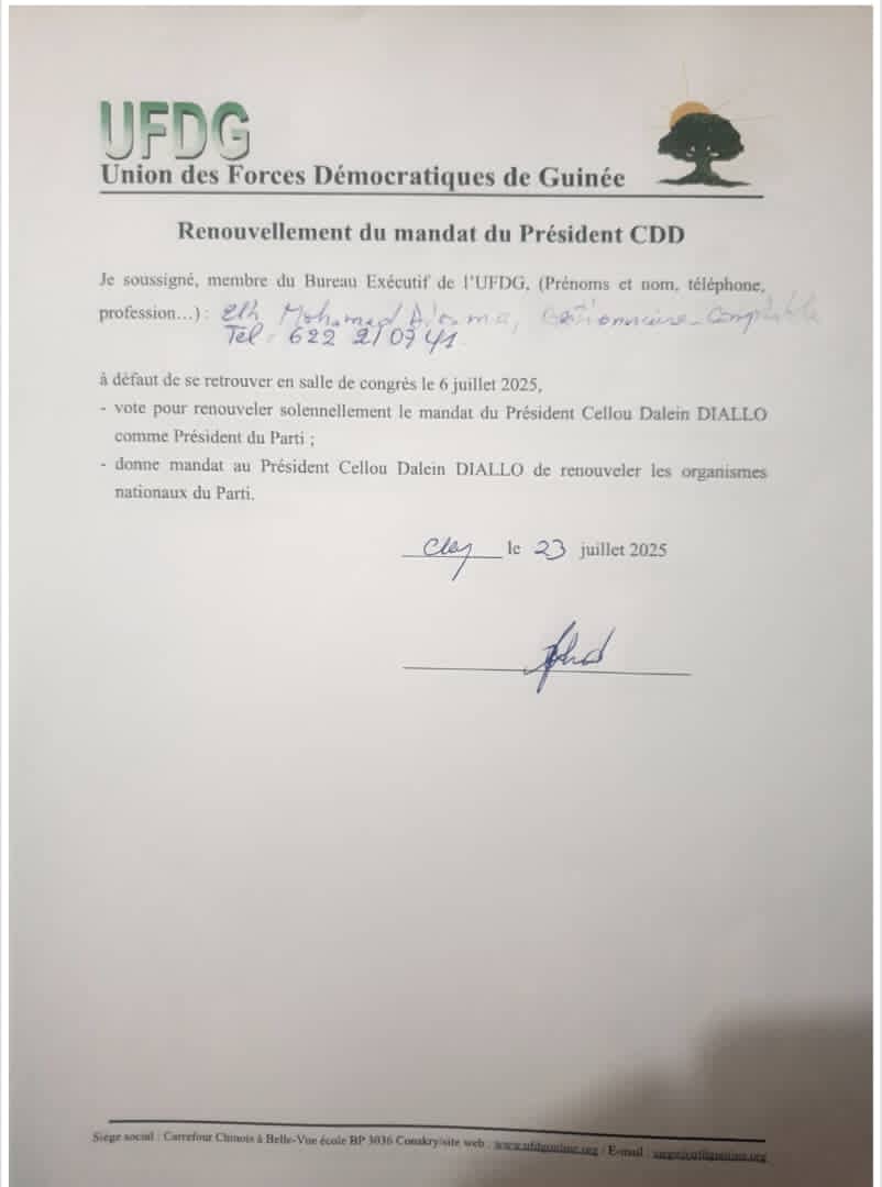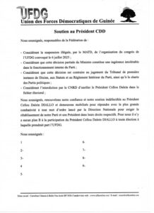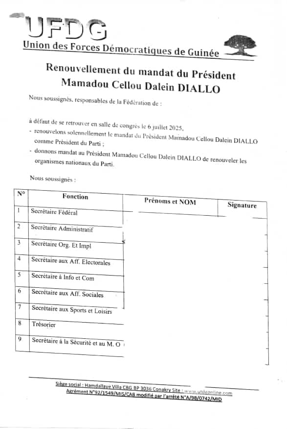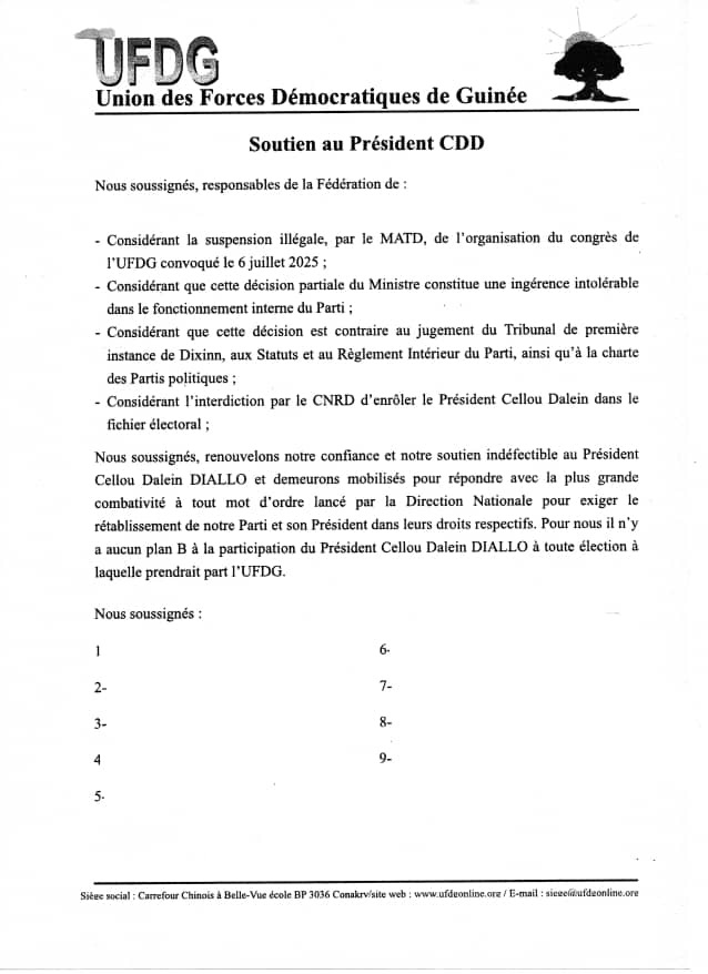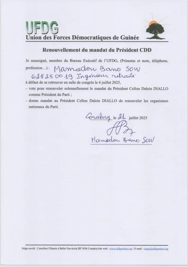 Ensemble, refusons la confiscation du Parti par une minorité manipulatrice et œuvrons pour une UFDG fidèle à ses principes fondateurs, respectueuse de ses textes, et tournée vers l’avenir.