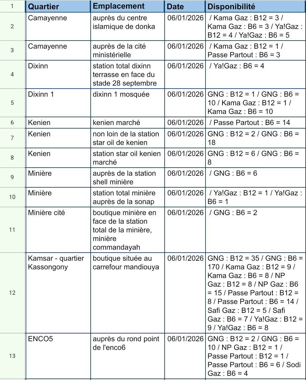 Rappel : depuis le 26 janvier 2024, le prix du kilogramme de gaz butane au consommateur final est fixé à 10.000GNF (1Kg = 10.000GNF).