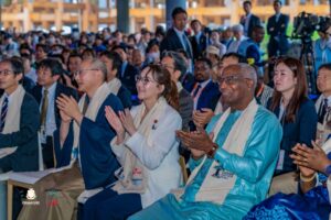À l’occasion de la Journée nationale de la Guinée à l’Exposition universelle Osaka 2025, le maire de Mishima a tenu à rendre un vibrant hommage à Mamady Keïta, initiateur de cette connexion artistique entre les deux nations. Pour marquer l’événement, cinquante élèves japonais formés au djembé ont offert un spectacle saisissant, salué par une ovation du public international présent à l’exposition.
