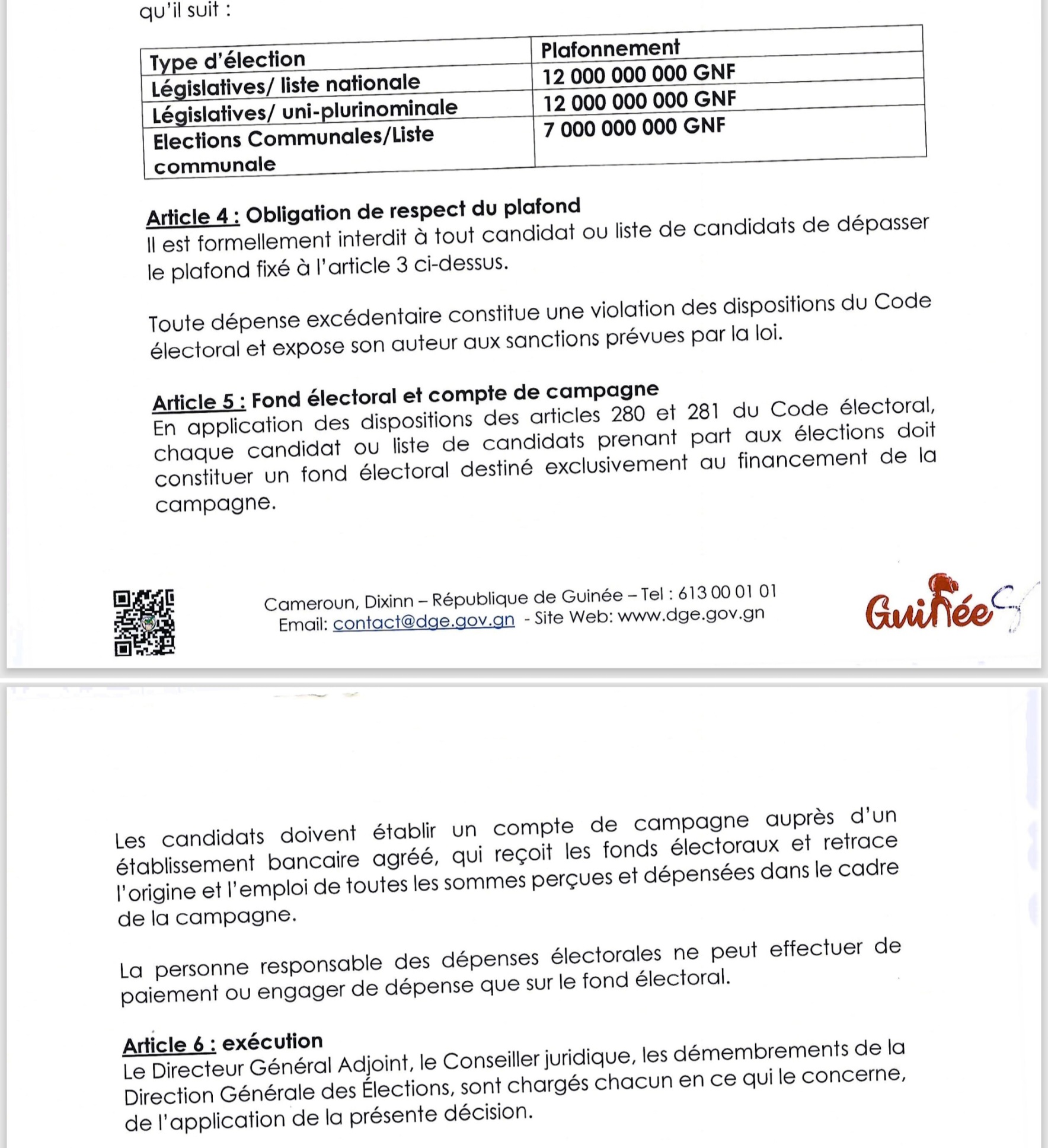 Dans le cadre des élections communales, les dépenses autorisées ne devront pas dépasser 7 milliards de francs guinéens.