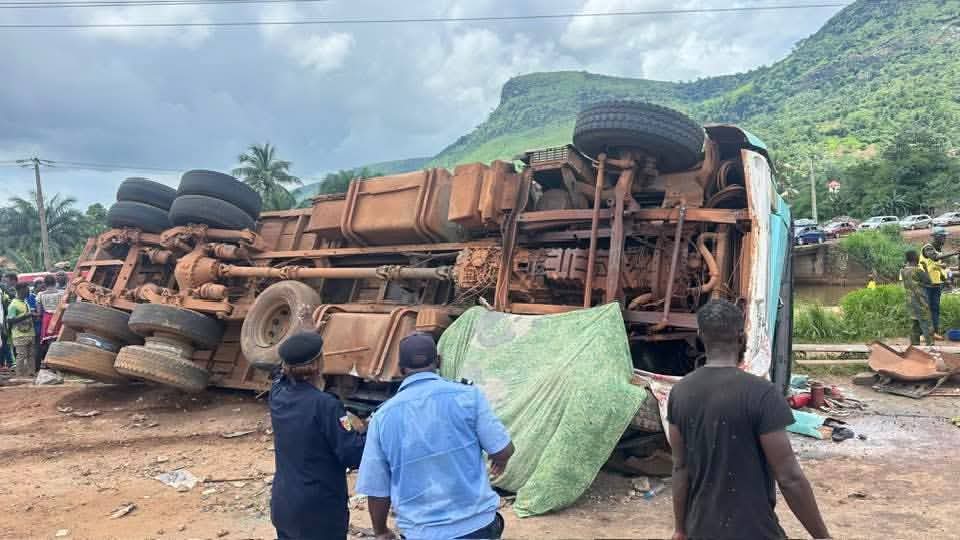 Un accident spectaculaire s’est produit ce vendredi sur le pont de Manéah, dans la préfecture de Coyah, lorsqu’un camion s’est renversé pour des raisons encore indéterminées.