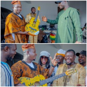 Clou de la cérémonie : la remise solennelle d’une guitare symbolique au Ministre, en signe de reconnaissance et de fraternité artistique. Un acte fort, porteur d’un message d’unité et d’espoir pour l’avenir des musiques traditionnelles guinéennes.