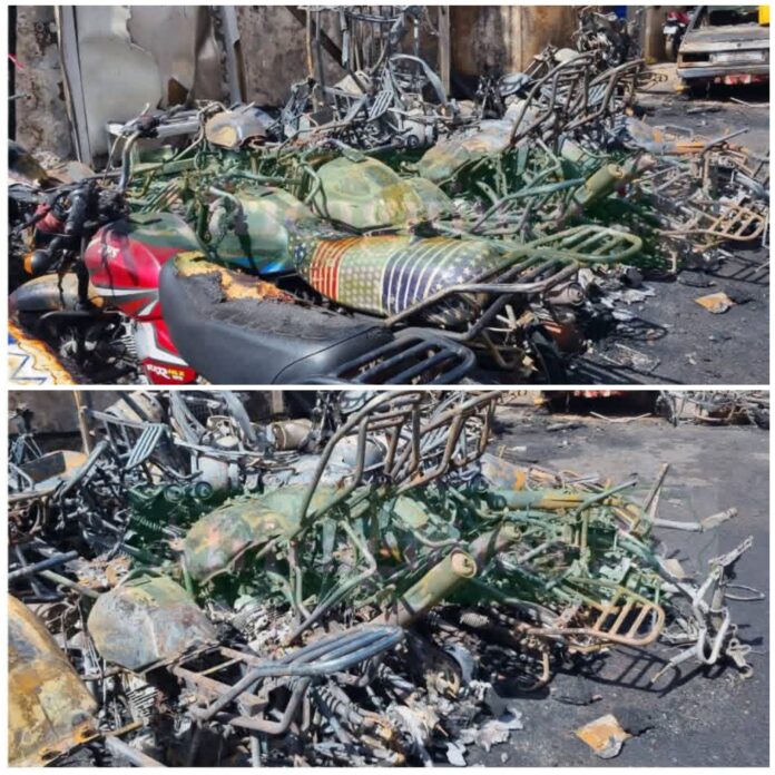 Malgré l’action des pompiers, le bilan matériel est lourd. Quatre véhicules et plusieurs motos ont été entièrement calcinés. Des bonbonnes de gaz entreposées sur le site ont explosé sous l’effet de la chaleur, et la boutique attenante à la station a également subi de lourds dommages.