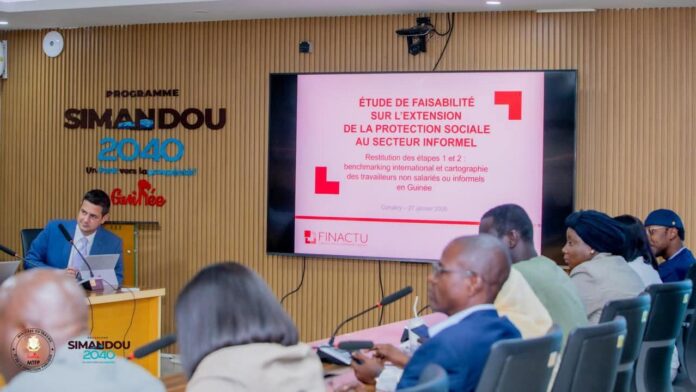 CONAKRY- Le processus d’élargissement de la protection sociale en Guinée franchit une étape décisive. Le Secrétaire général du Ministère du Travail et de la Fonction publique (MTFP), Aboubacar Kourouma, a présidé, ce mardi 27 janvier 2026, une séance de travail stratégique consacrée à l’examen des résultats des deux premières phases de l’étude sur l’intégration des travailleurs du secteur informel et des indépendants dans les mécanismes de protection sociale.