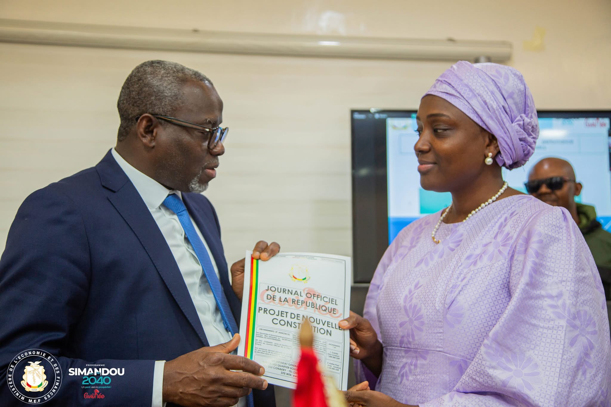 Dans une ambiance marquée par le sérieux et l’engagement républicain, le Ministre de l’Économie et des Finances, Mourana SOUMAH, a officiellement présenté le projet de la nouvelle Constitution de la République de Guinée à l’ensemble des dirigeants de son ministère. Cette cérémonie fait partie de la phase active de diffusion du texte, avant sa soumission au peuple guinéen par voie référendaire.
