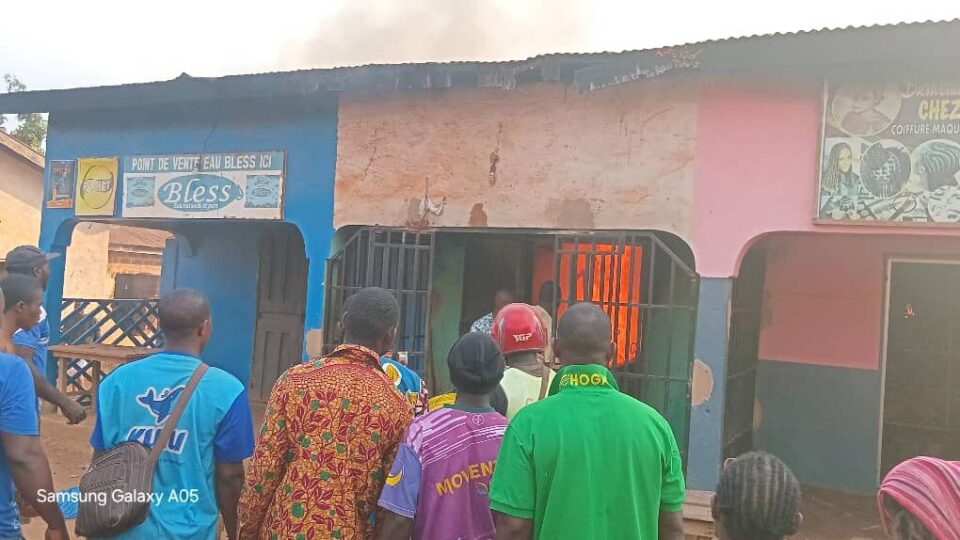 N’ZÉRÉKORÉ — Un incendie ravageur a frappé ce jeudi 25 décembre 2025 le quartier Gbagana à N’Zérékoré, détruisant un bâtiment abritant quatre boutiques, dont un salon de coiffure et des commerces de boissons et carburant.