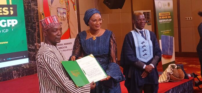 La cérémonie, organisée par le ministère de l’Industrie et des Petites et Moyennes Entreprises (PME) en collaboration avec l’OAPI, s’inscrit dans le cadre de la mise en œuvre du Projet d’Appui à la Mise en Place des Indications Géographiques (PAMPIG 2).