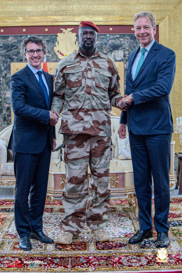 Ce jeudi 21 août 2025, Son Excellence le Général Mamadi Doumbouya, Président de la République, a reçu Simon Trott au Palais Mohammed V. La rencontre s’est tenue en présence de plusieurs hauts responsables : le Général Amara Camara, Ministre Secrétaire général de la Présidence, Bouna Sylla, Ministre des Mines et de la Géologie, Ousmane Doumbouya, Conseiller à la Présidence, Dr Alpha Oumar Camara, Conseiller juridique, ainsi que Mamoudou Nagnalen Barry, Président du Conseil d’Administration de la Compagnie du Transguinéen (CTG).