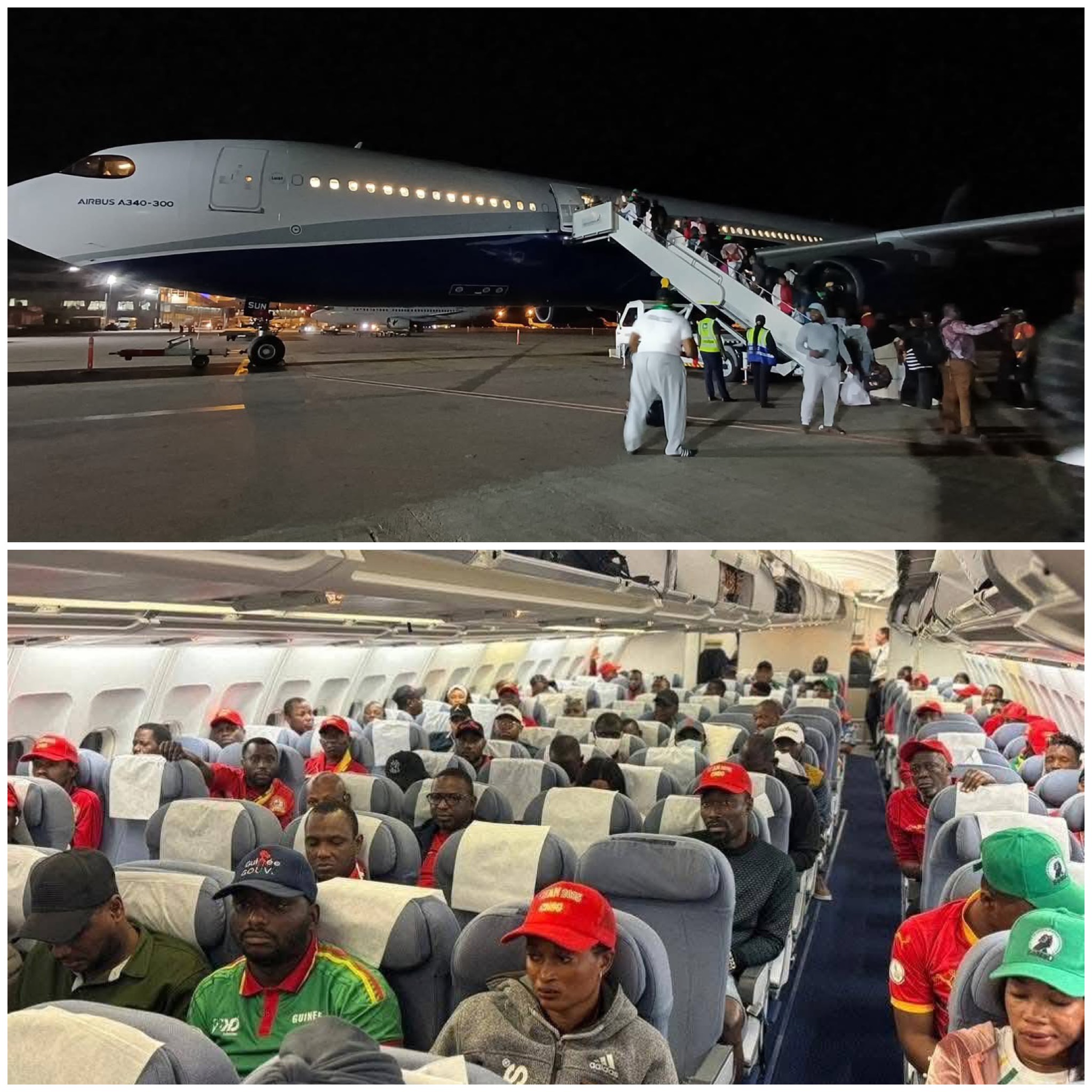 Face à l’urgence de rapatrier les joueurs et leurs accompagnateurs, le groupe a réussi à affréter un Airbus A340-312 de la compagnie HiFly, configuré en version VIP. Plus de 250 compatriotes ont ainsi regagné Conakry dans un confort optimal, dont 30 passagers en classe business. Le vol a duré six heures.
