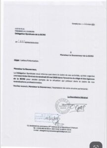 Conakry, 19 mai 2025 – La tension monte au sein de la Banque Centrale de la République de Guinée (BCRG). Dans une lettre adressée au Gouverneur de l’institution, la Délégation Syndicale annonce l’organisation d’une Assemblée Générale le vendredi 23 mai 2025 dans l’enceinte du siège et des agences régionales de la BCRG. L’objectif : informer les travailleurs de l’évolution des négociations liées à leurs revendications professionnelles.